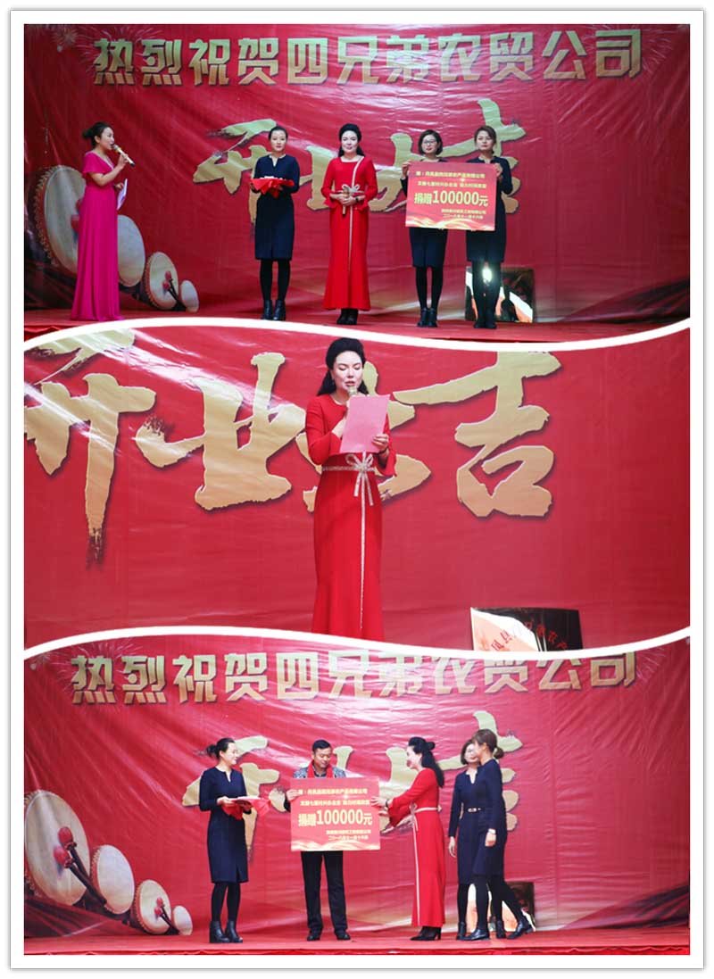 在熱烈的掌聲中,陜西秦川建筑工程有限公司總經(jīng)理劉愛云、四兄弟農(nóng)產(chǎn)品有限公司董事長(zhǎng)劉三軍,進(jìn)行了捐贈(zèng)資金交接儀式,陜西秦川建筑工程有限公司向四兄弟農(nóng)產(chǎn)品有限公司捐款10萬元。