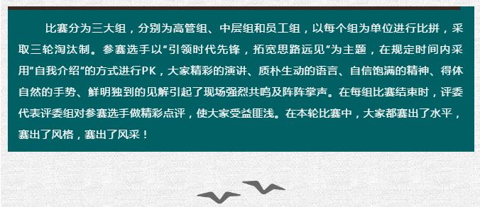 公司特舉辦第六屆員工PK演講大賽暨“引領(lǐng)時(shí)代先鋒,拓寬思路遠(yuǎn)見”
