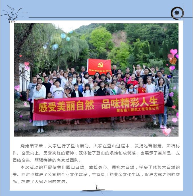 春天是充滿陽光、充滿活力的季節(jié)。為了讓公司全體員工共同參與集體活動鍛煉身體,使大家能夠在繁忙而緊張的工作之余放飛心情享受自然,增強集體榮譽感和團隊凝聚力,陜西秦川建筑工程有限公司組織全體員工于2022年5月3日前往芮鼎山莊進行燒烤一日游活動。