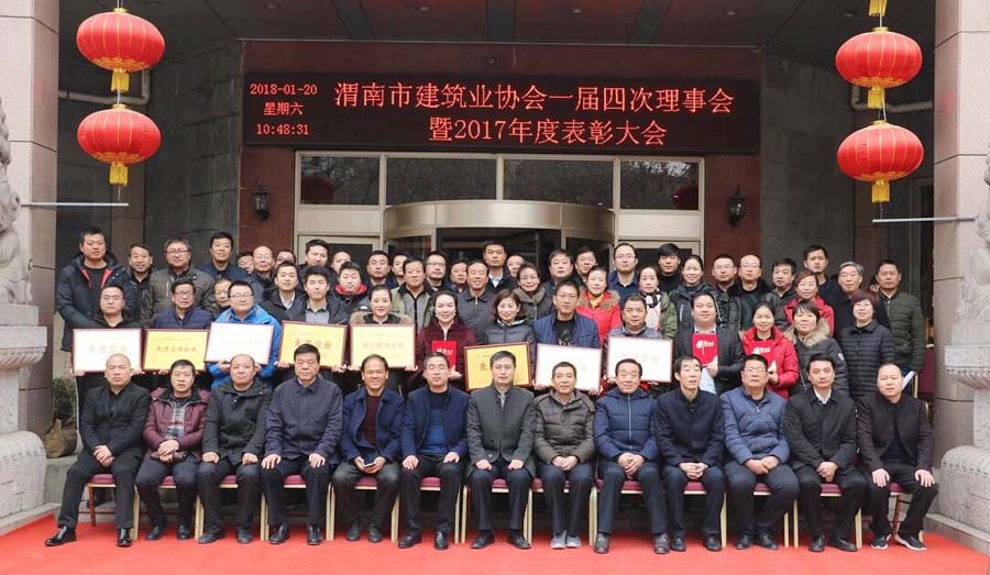 2018年1月20日上午,渭南市建筑業(yè)協(xié)會一屆四次理事會暨2017年度表彰大會在渭南祥龍賓館4樓多功能廳召開,此次會議總結(jié)匯報了渭南市建筑業(yè)協(xié)會2017年工作及2018年工作要點,并表彰了渭南市建筑業(yè)2017年度優(yōu)質(zhì)結(jié)構(gòu)工程、五優(yōu)一先進(jìn)及先進(jìn)監(jiān)理企業(yè)等榮譽獲獎?wù)摺?/span>